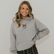 Athletic grey hoodie, boyfriend fit. 50% Cotton, 50% Polyester. Our model is wearing size medium (unisex).