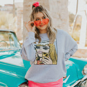 Grey crewneck fleece, boyfriend fit. 50% Cotton, 50% Polyester. Our model is wearing size medium (unisex).