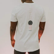 White tee, unisex fit. Our model is wearing size Large (unisex).
